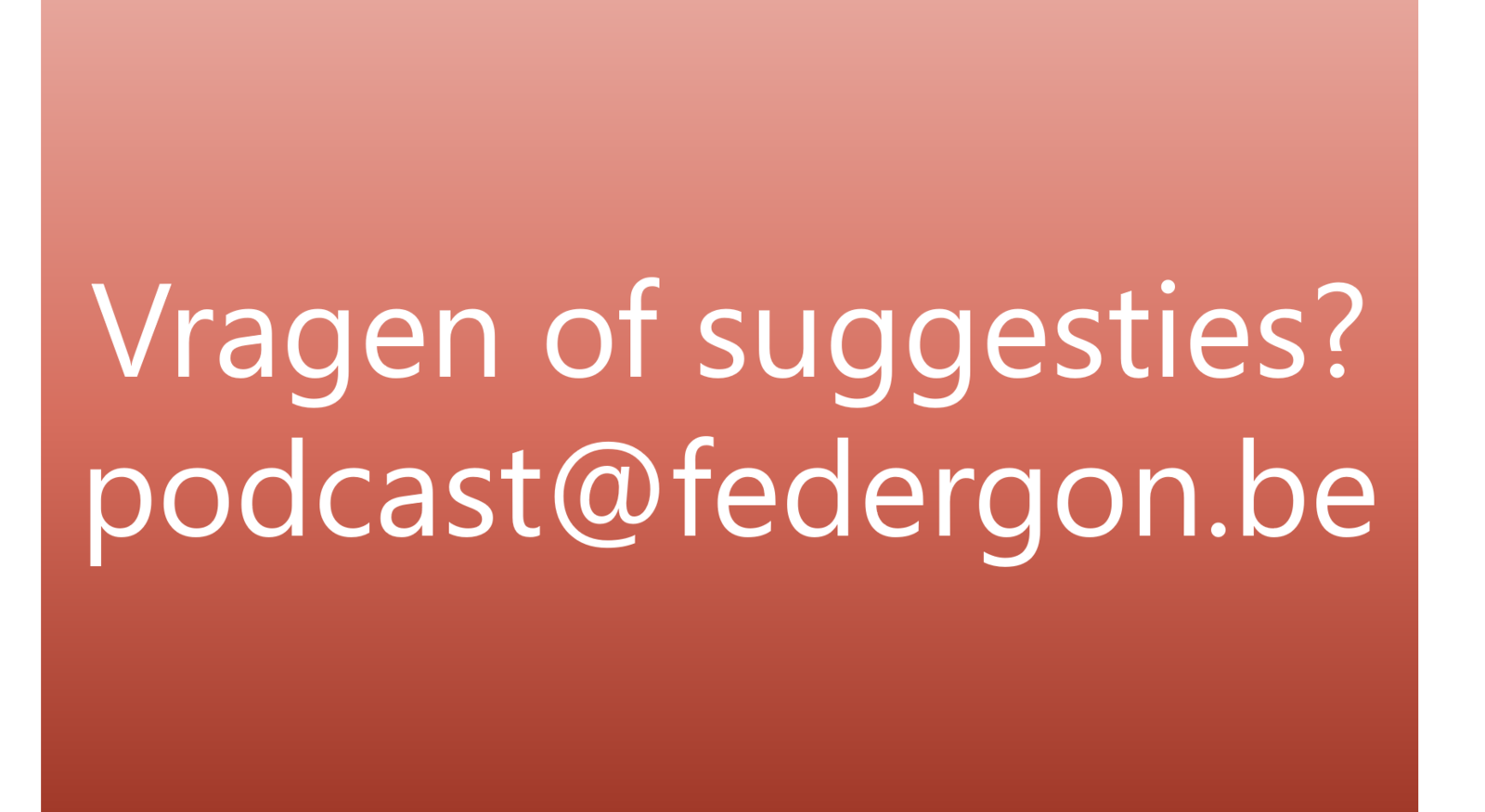 Heeft u vragen voor Paul en Jan of heeft u thema's die u graag eens zou laten fileren? Alle suggesties en vragen zijn welkom op podcast@federgon.be